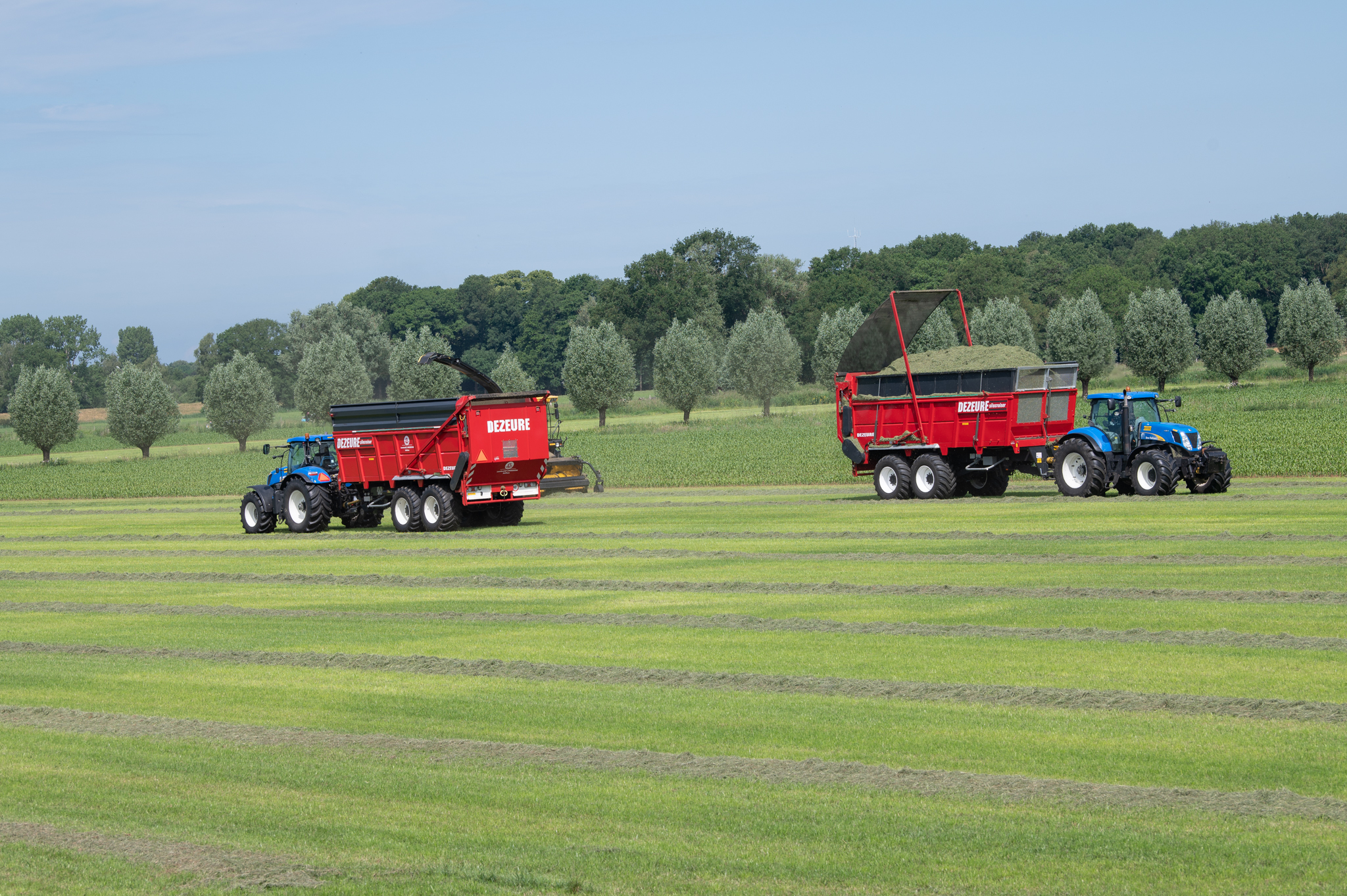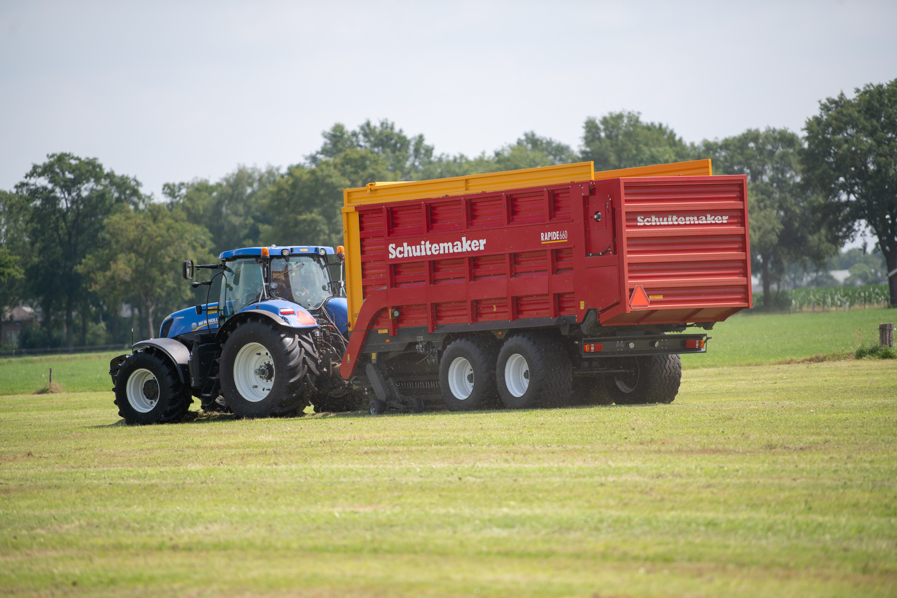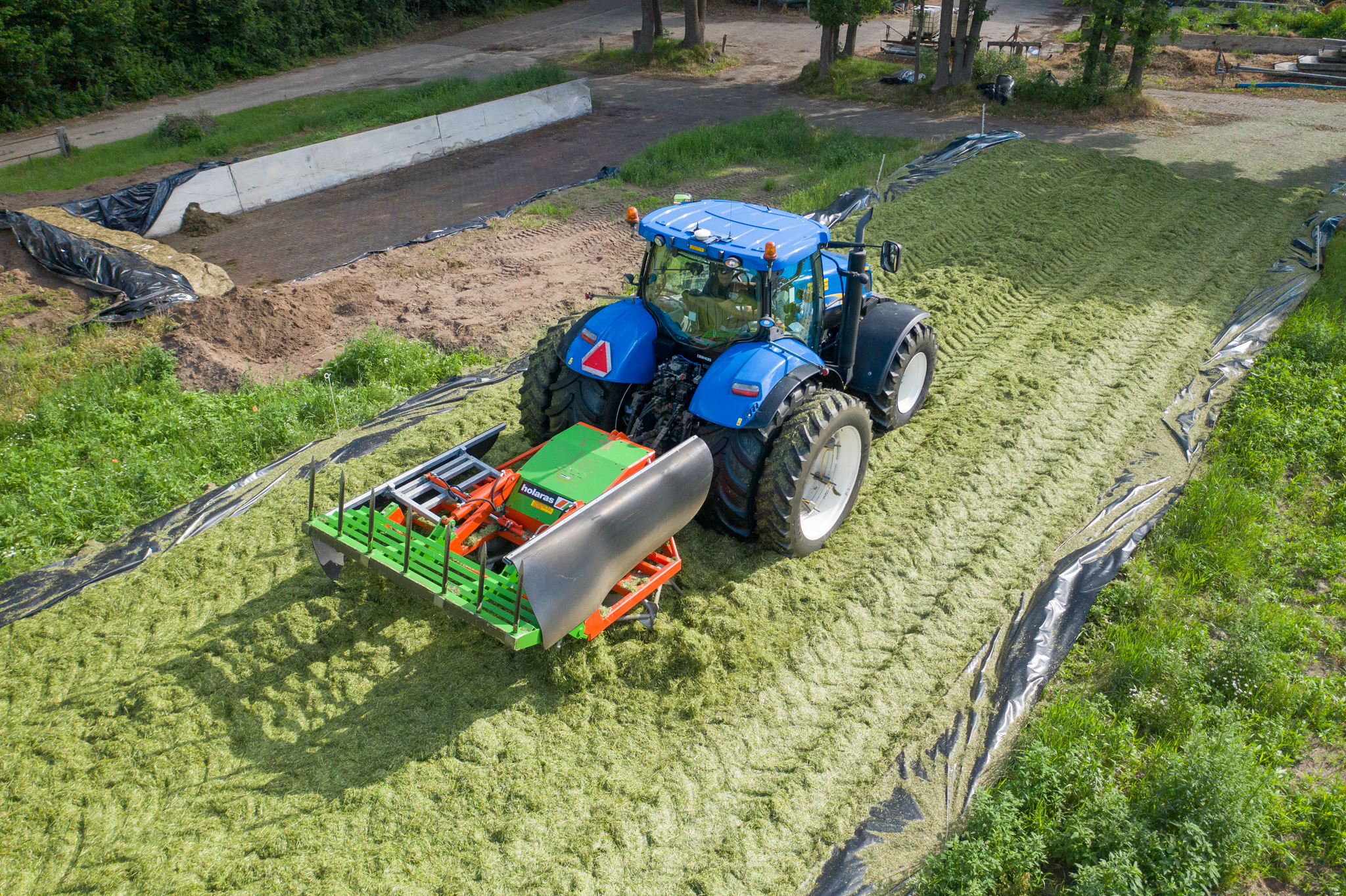 Wij beschikken over 3 Schuitemaker Rapide-opraapwagens waarvan 1 uitgevoerd is met een gestuurde 8 wielige tandem. Deze wagens hebben een invoer met 40 messen. Het eindproduct aan de bult is goed vergelijkbaar met gehakseld gras. In overleg kan de bult met een shovel of zware trekker worden aangereden.