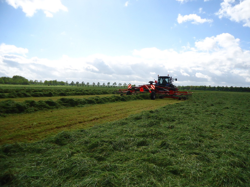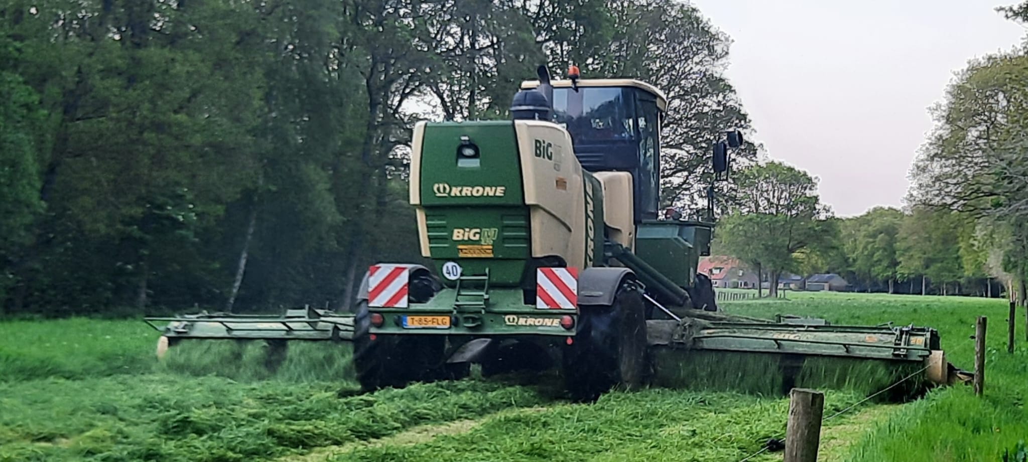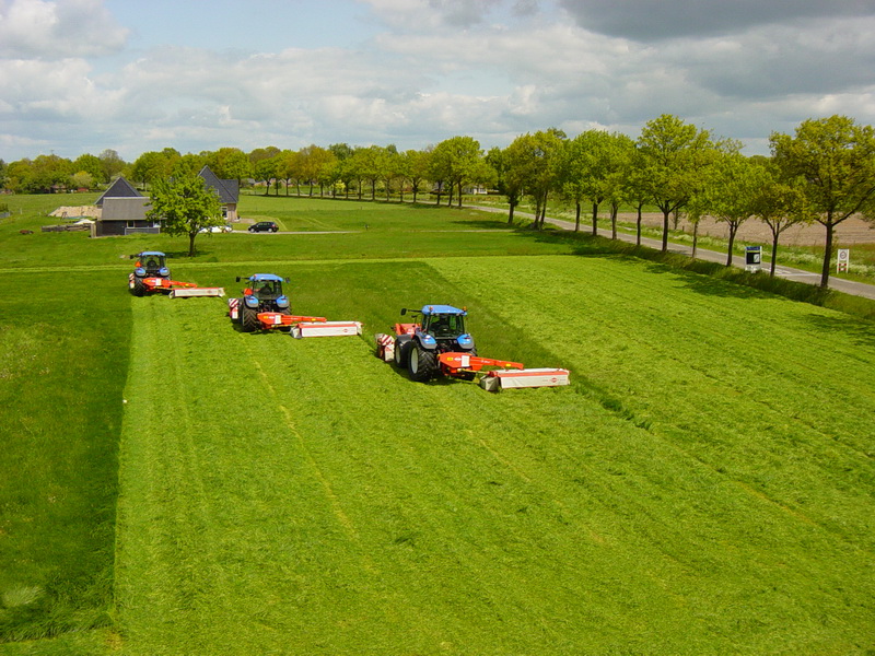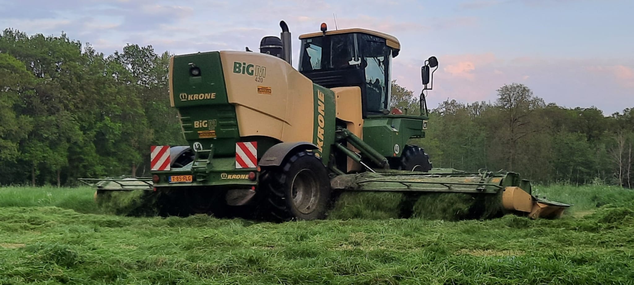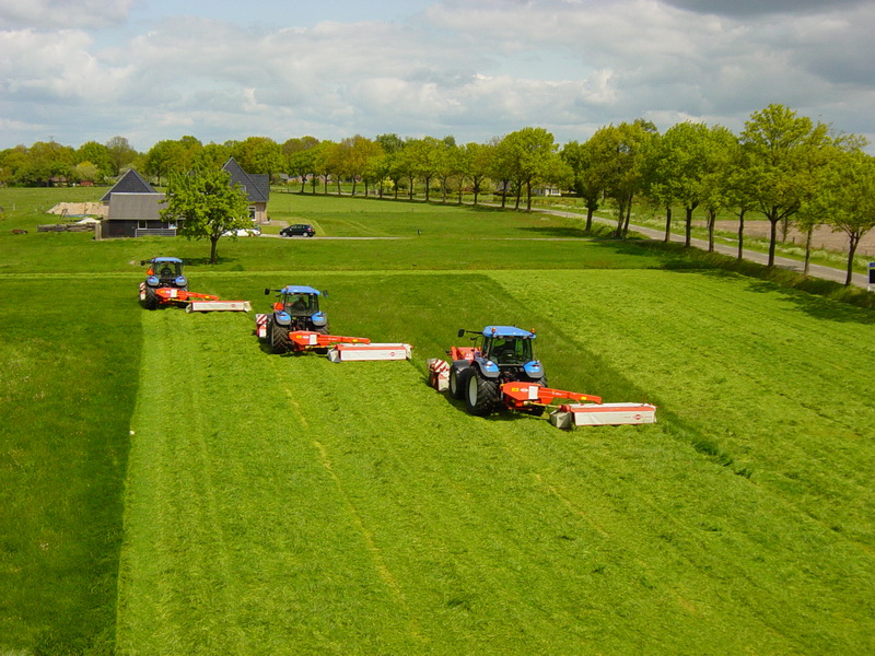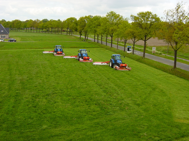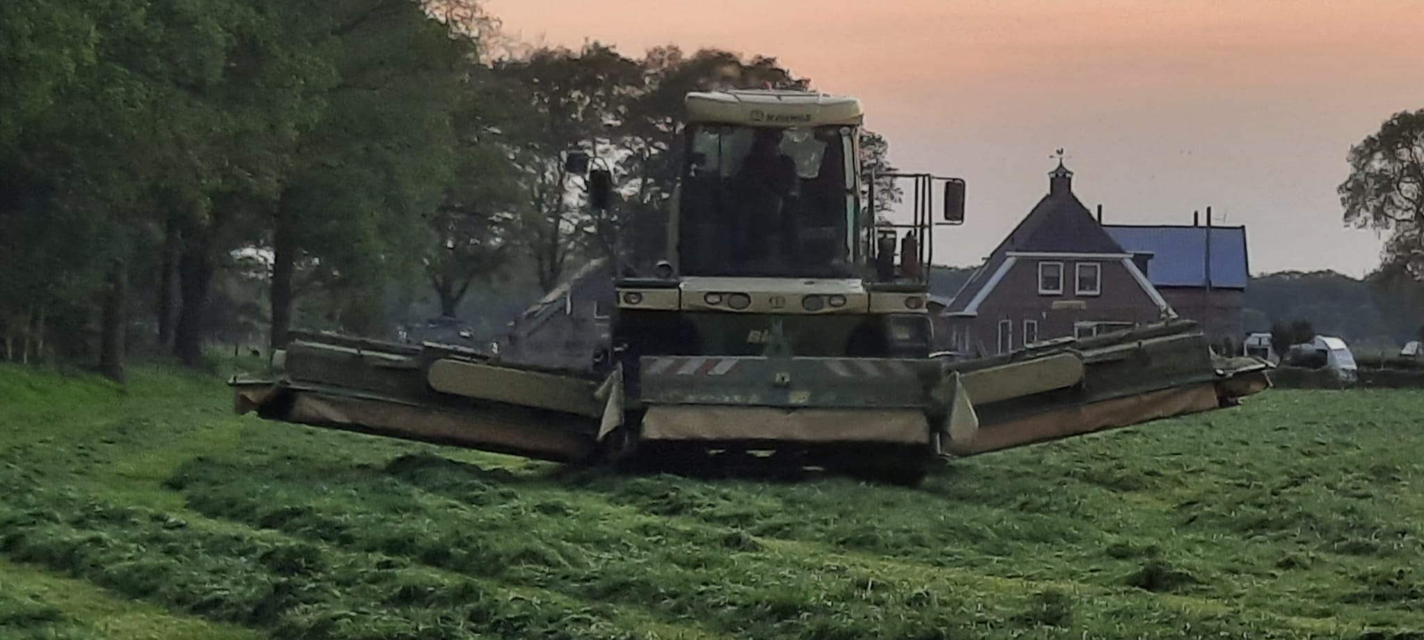 Om uw arbeidspiek tijdens de grasoogst op te vangen, kunnen wij met de inzet van 2 maai en harkcombinaties uw gras tijdig los maaien en bij elkaar harken.