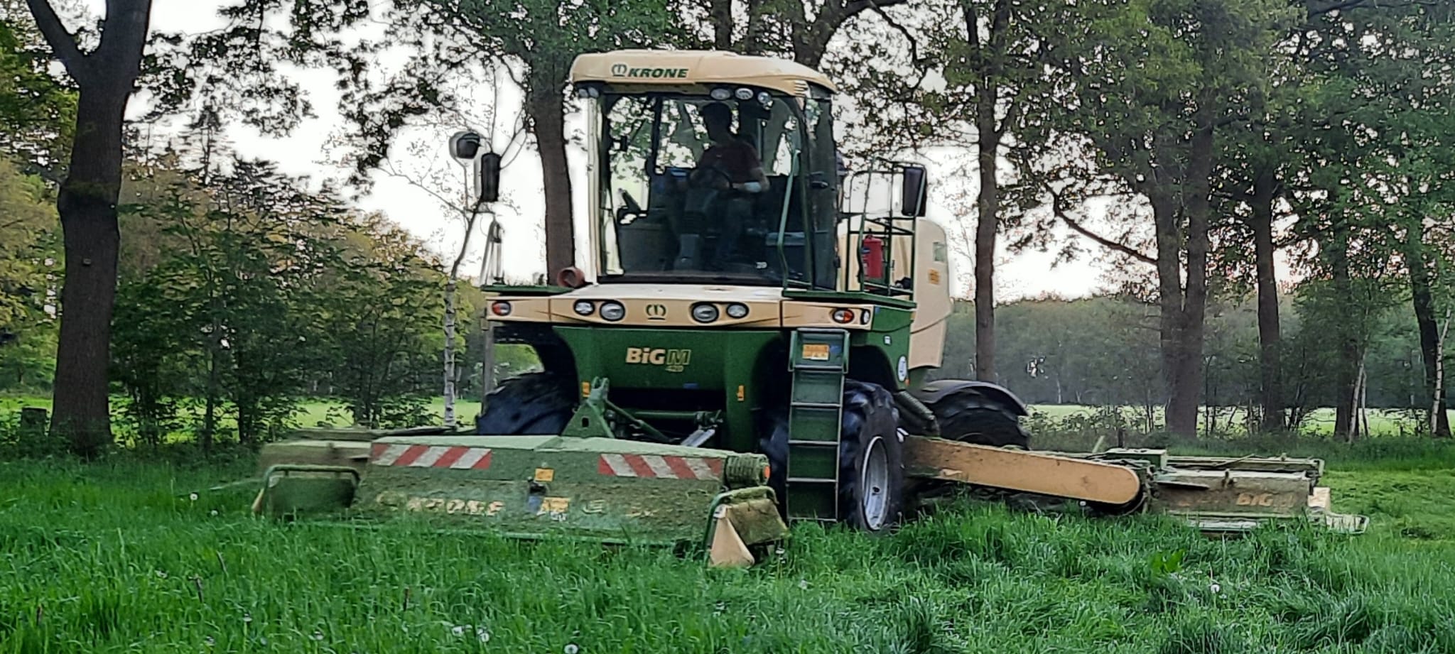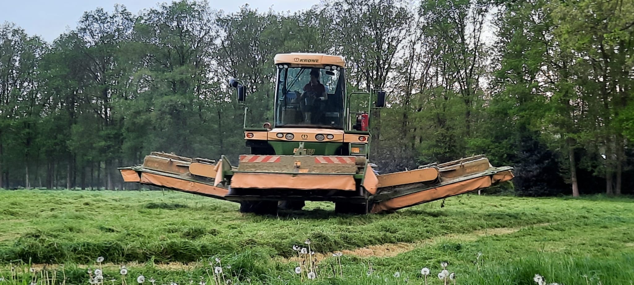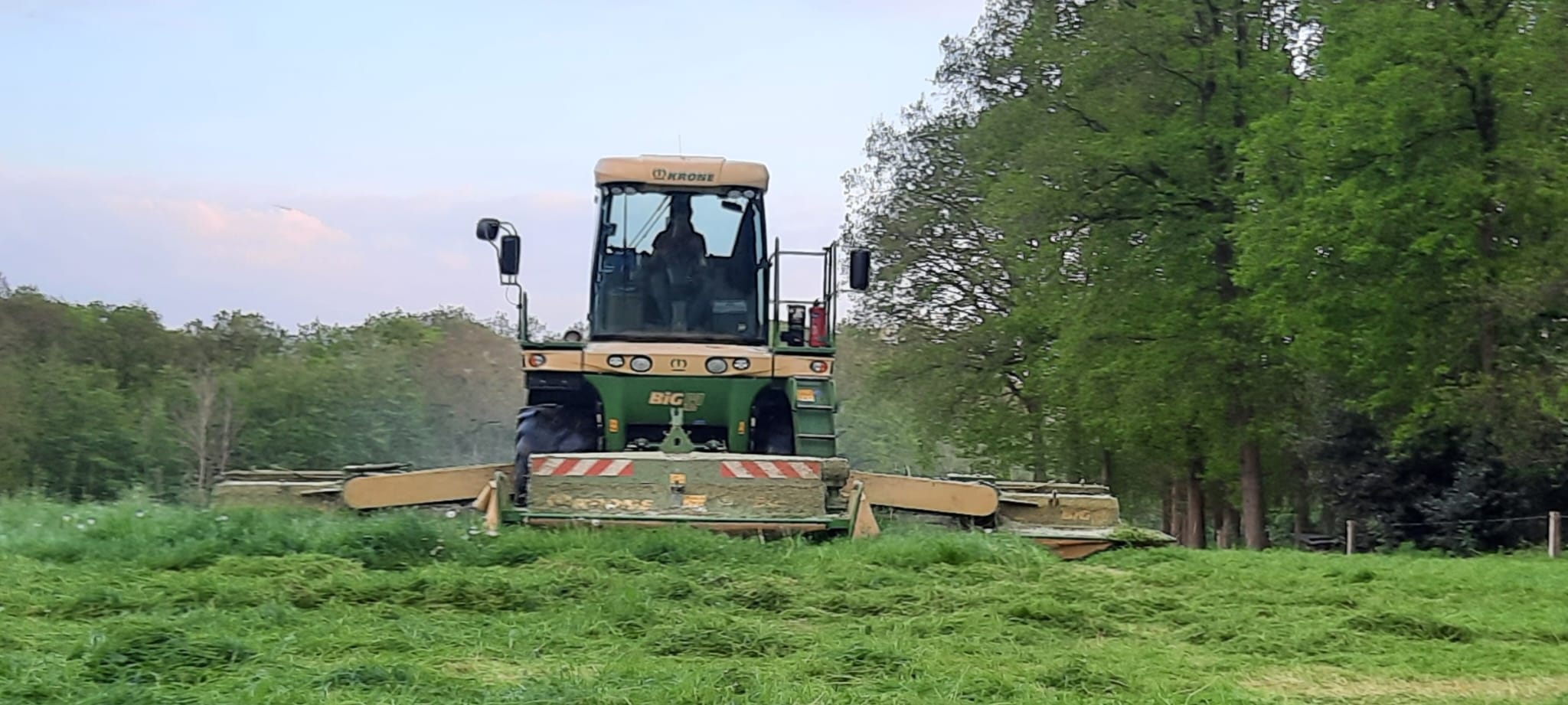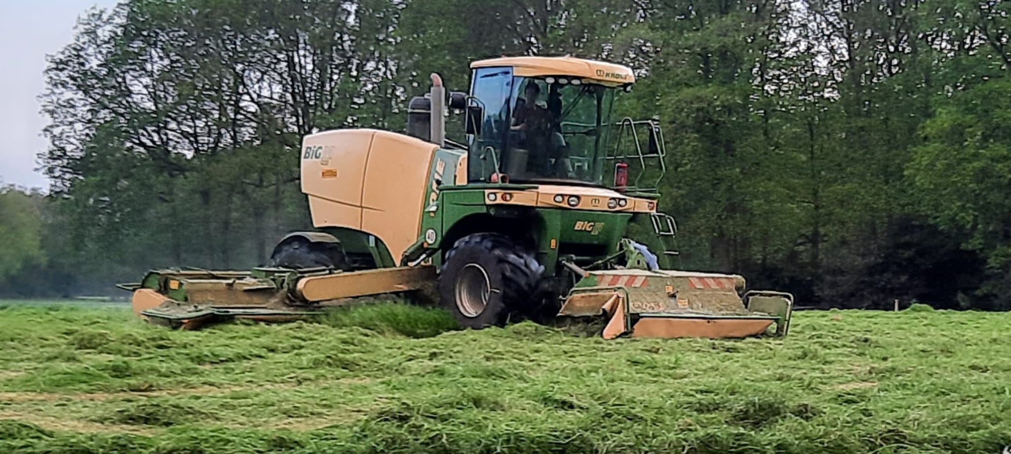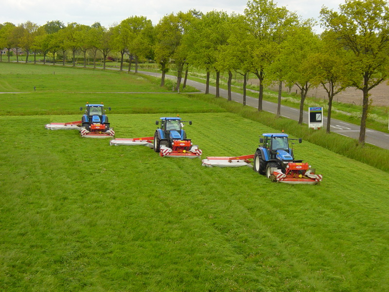 Om uw arbeidspiek tijdens de grasoogst op te vangen, kunnen wij met de inzet van 2 maai en harkcombinaties uw gras tijdig los maaien en bij elkaar harken.