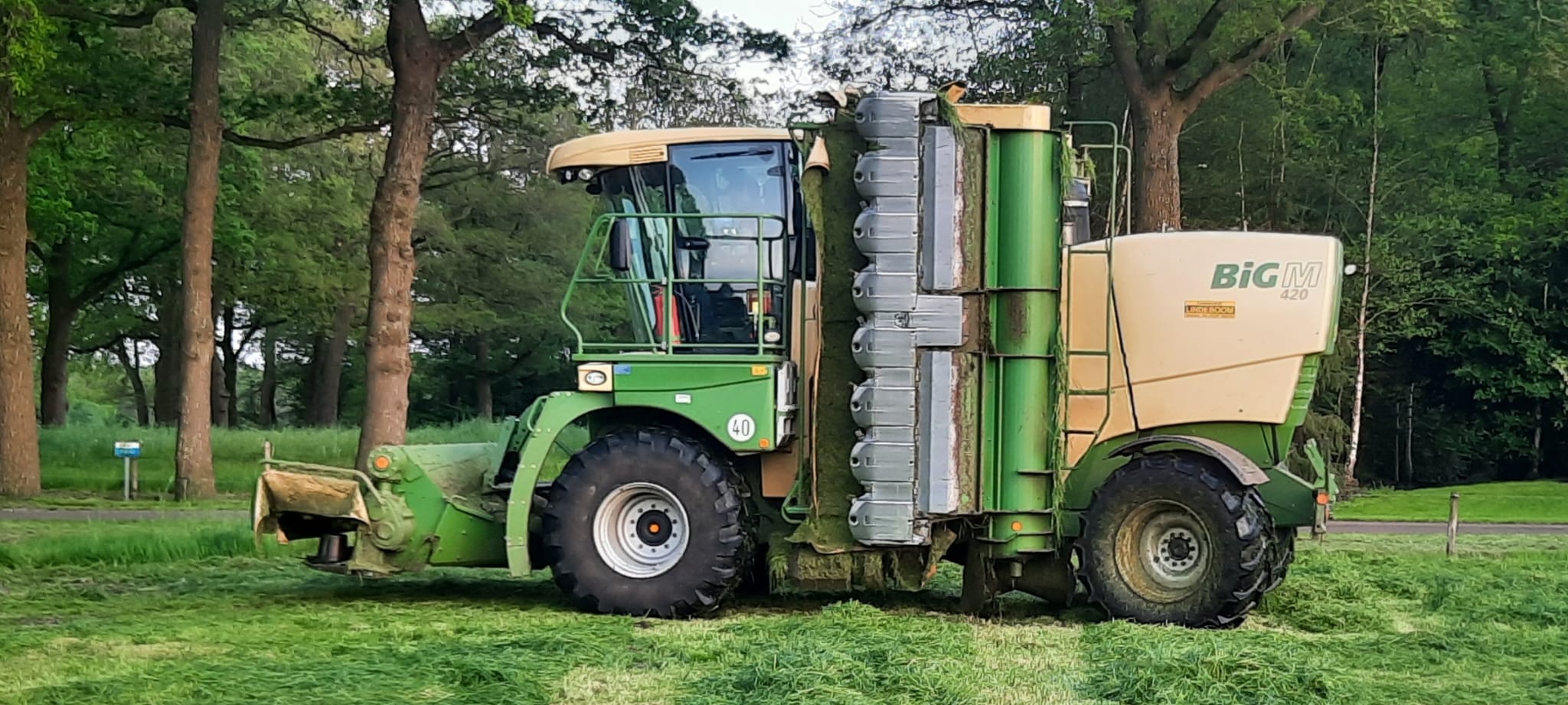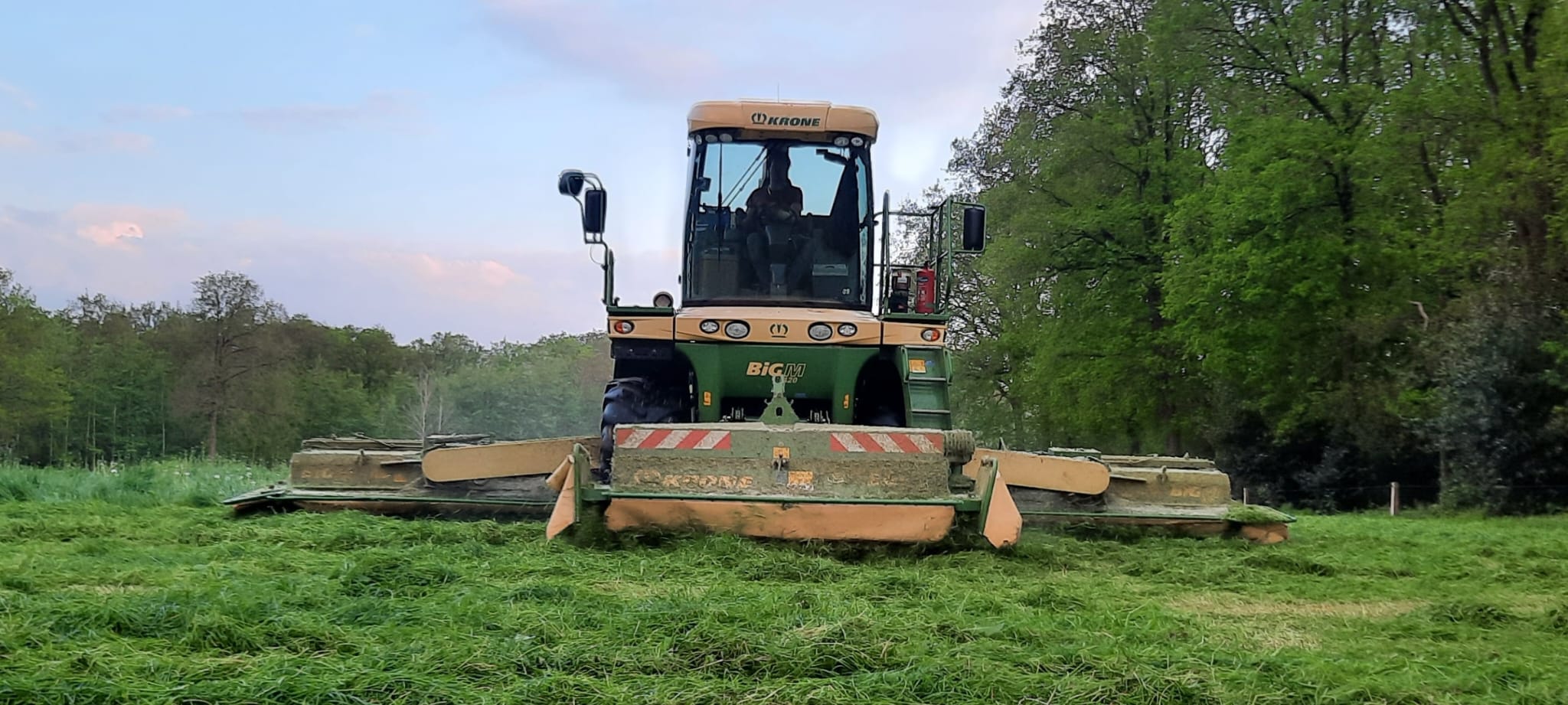 Met onze Krone Big M hopen wij u goed van dienst te kunnen zijn met het maaien van uw percelen. De Big M heeft een werkbreedte van 9,72 meter en dankzij de zwadsamenvoeging kunnen we langs de kant de buitenste zwad 3 meter naar binnen leggen. Verder is de Big M voorzien van hydraulisch instelbare maaihoogte en een kneuser.